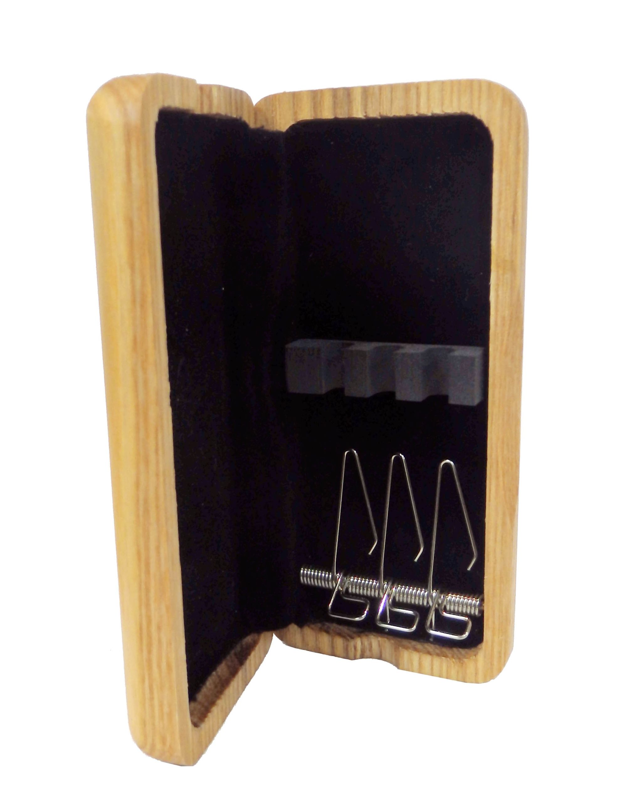 Holzetui gewachst mit Feder-Kipp- Mechanik zum leichteren herausnehmender Rohre