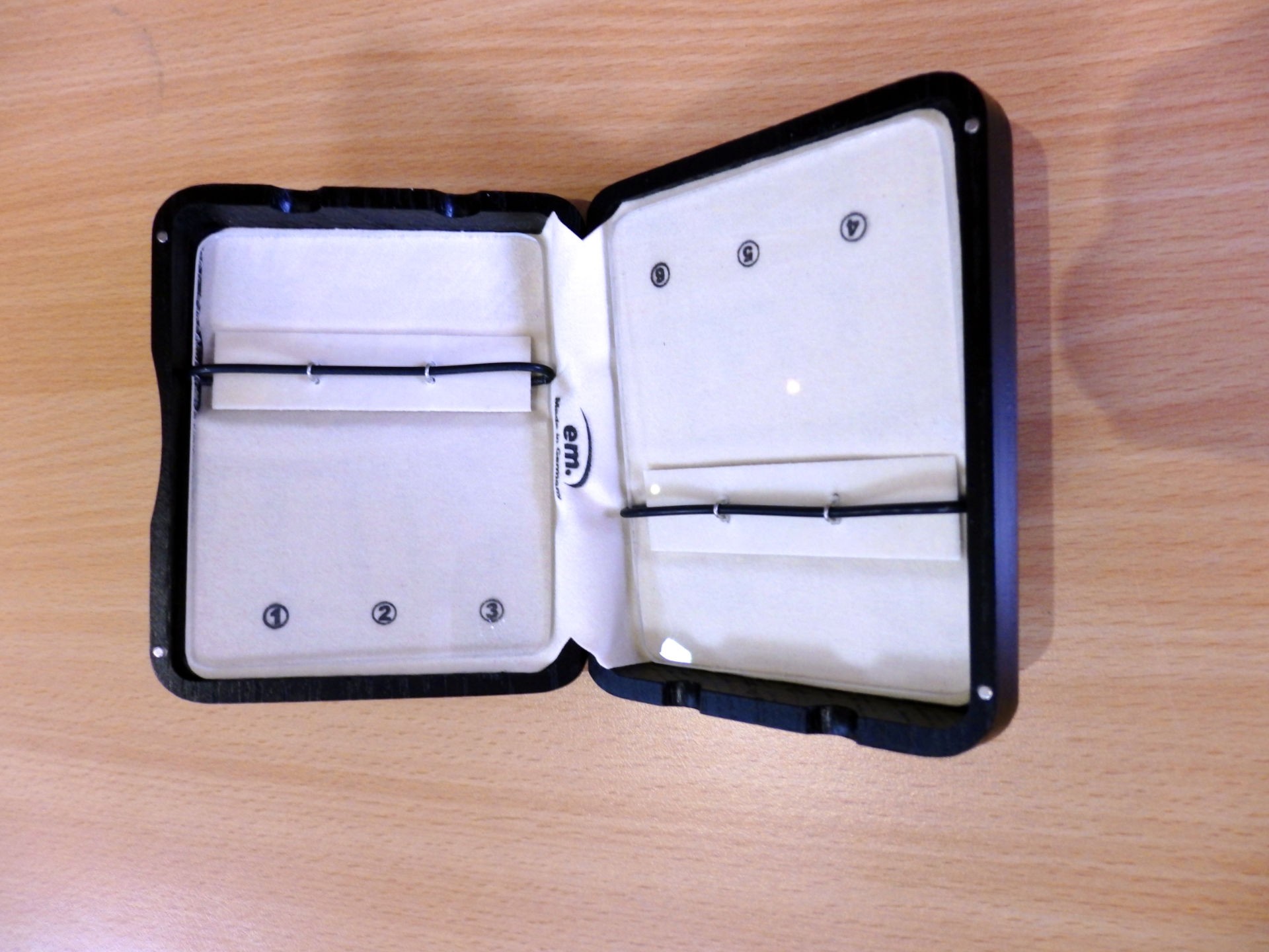 Holzetui, schwarz gefärbt.